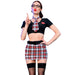 La minifalda de cuadros es un clásico en los disfraces de colegiala. Suele ser corta y plisada, evocando el uniforme típico de las estudiantes. Los cuadros son una característica distintiva de este tipo de falda. El cinturón para la falda puede ser un accesorio opcional para agregar un toque de detalle adicional a la falda y para ajustarla según la preferencia de quien lo lleva.