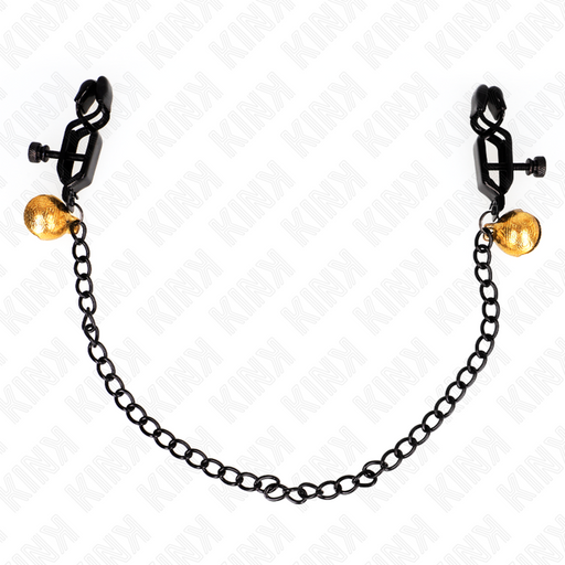 Kink - Pinzas Para Pezones Dorada Fina Con Triple Bola De Vidrio Negro 7 Cm Gama de Pinzas para Pezones de KINK: Sensualidad y Estimulación en Cada...