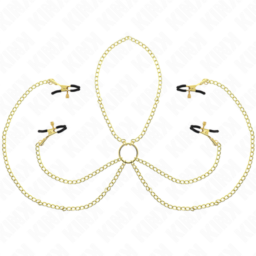 Kink - Pinzas Para Pezones Y Clítoris 4 Enganches Ajustable Dorado Gama de Pinzas para Pezones de KINK: Sensualidad y Estimulación en Cada DetalleE...