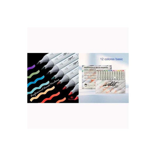 Alex Bog Estuche 12 Rotuladores Professional Brush Market Basic Colors Doble Punta Biselada/Pincel C/Surtidos