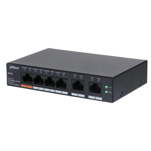 Dahua Cs4006-4et-60 Switch Poe 4 Puertos 10/100 + 2rj45 Uplink Gigabit 60w Manejable En Cloud Layer2
