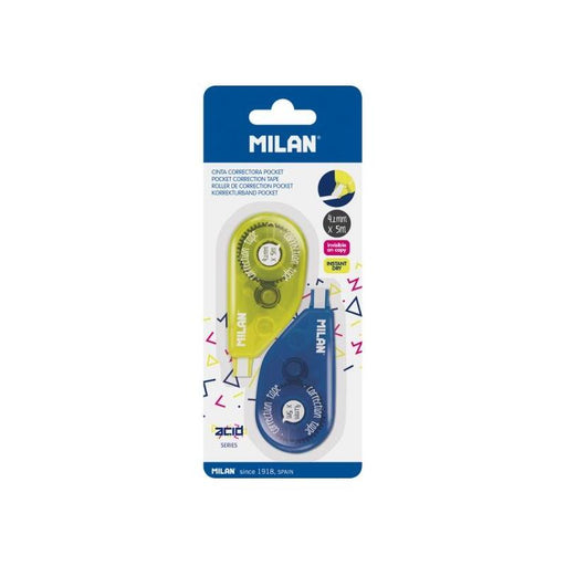 Milan Acid Pocket Pack De 2 Cintas Correctoras - Presentacion En Blister - 2mm X 5m - Amarillo