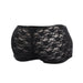 Estos boxers cuentan con un diseño elegante y sensual. Tanto la parte trasera como los laterales cuentan con un encaje semi transparente con patrón floreado, mientras que la parte de la entrepierna es en negro liso.