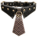 El collar presenta un diseño único de cuello de camisa, añadiendo un toque de sofisticación y elegancia a tus momentos privados. Este collar se extiende en una corbata de cuero sintético marrón adornada con los detalles distintivos de la marca, resaltando su apariencia elegante y única.